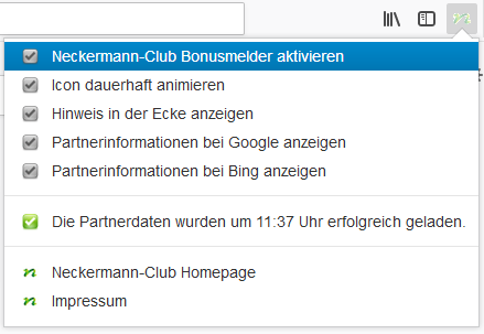 Der Bonusmelder blendet Hinweise auf OS/EL-Card-Partner und OS/EL-Card-Vorteile ein, wenn Sie in Google oder bing suchen oder Partner-Webseiten aufrufen.