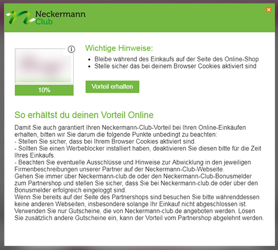 - Öffnen Sie die Internetseite eines Neckermann-Club-Partners, bei dem Sie einkaufen möchten.